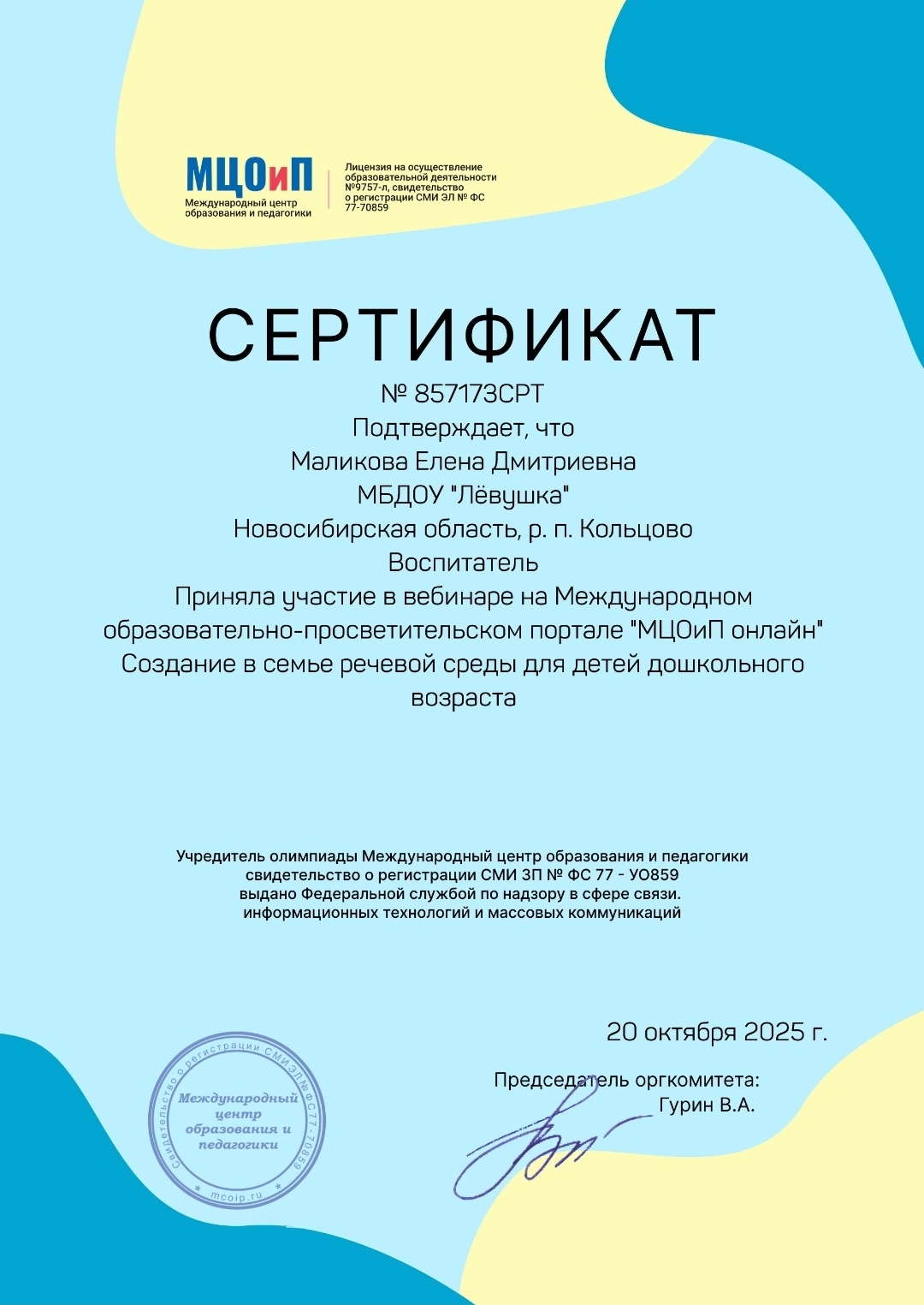Вебинар "Создание в семье речевой среды для детей дошкольного возраста"
